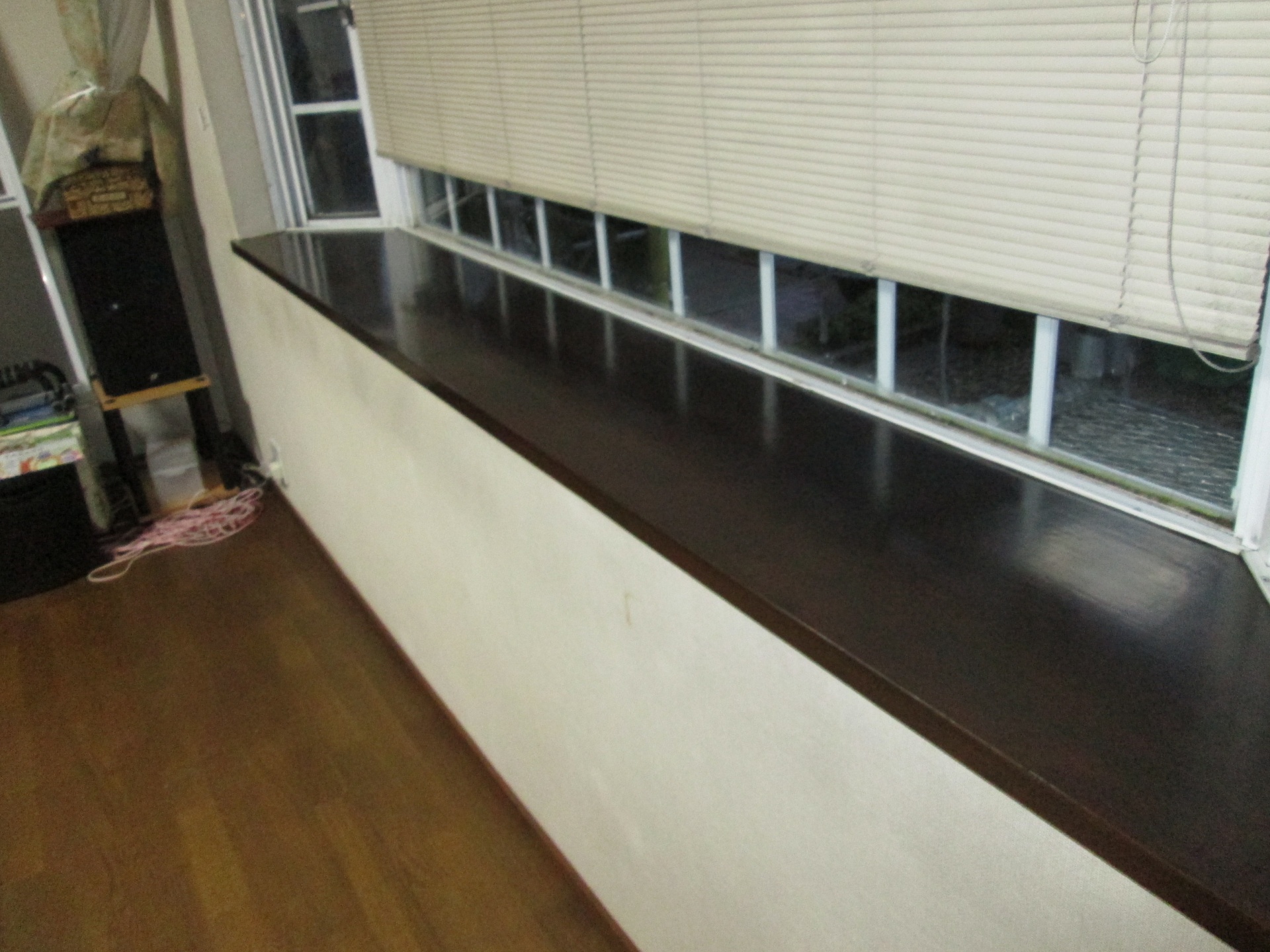 今回は出窓の天板が傷んできたという事で、その天板を補修して、ウレタンクリアーで塗装すると言う案件です。その天窓がこちら。