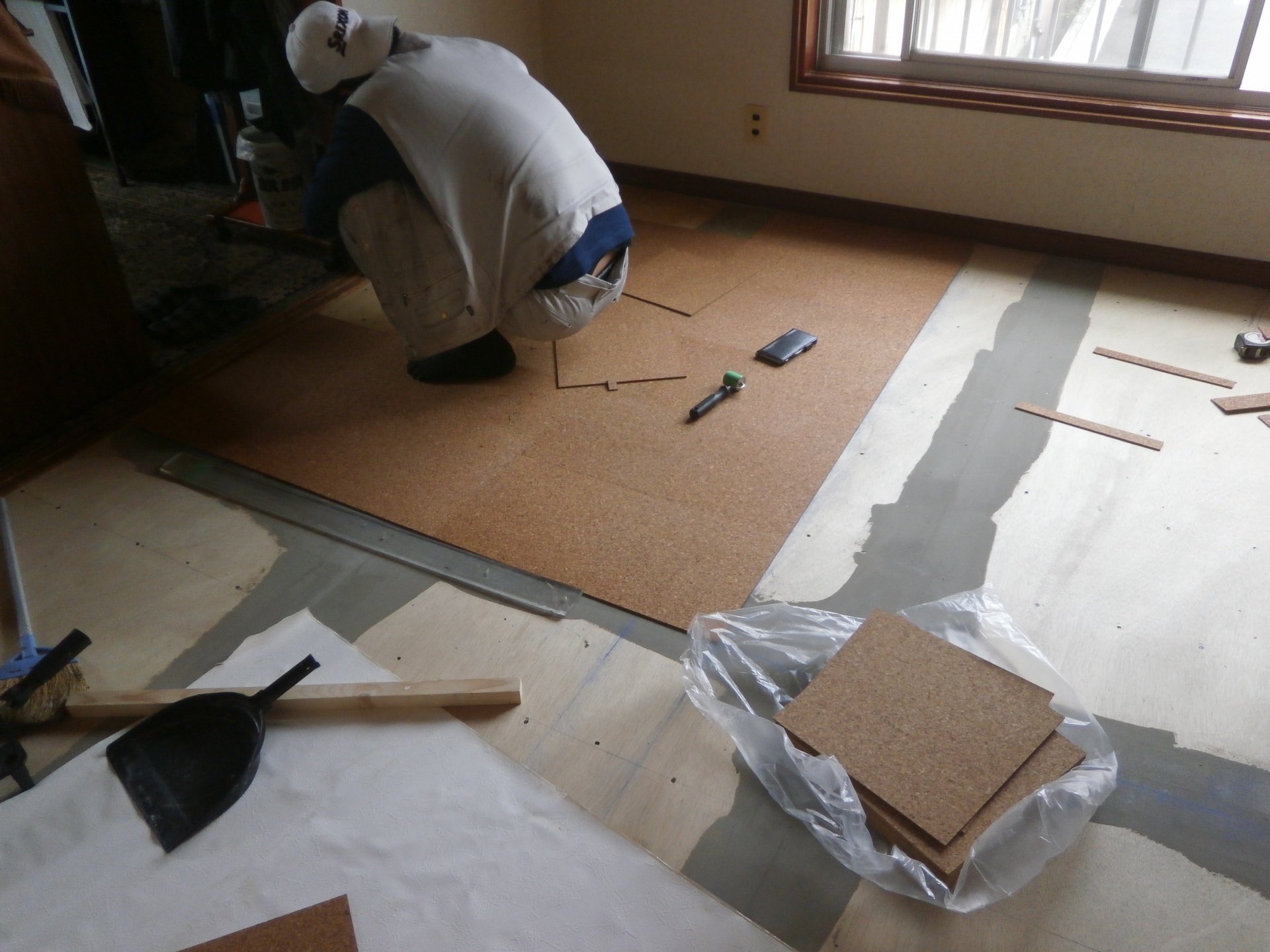 絨毯からコルクフローリングへの内装工事:習志野市大久保