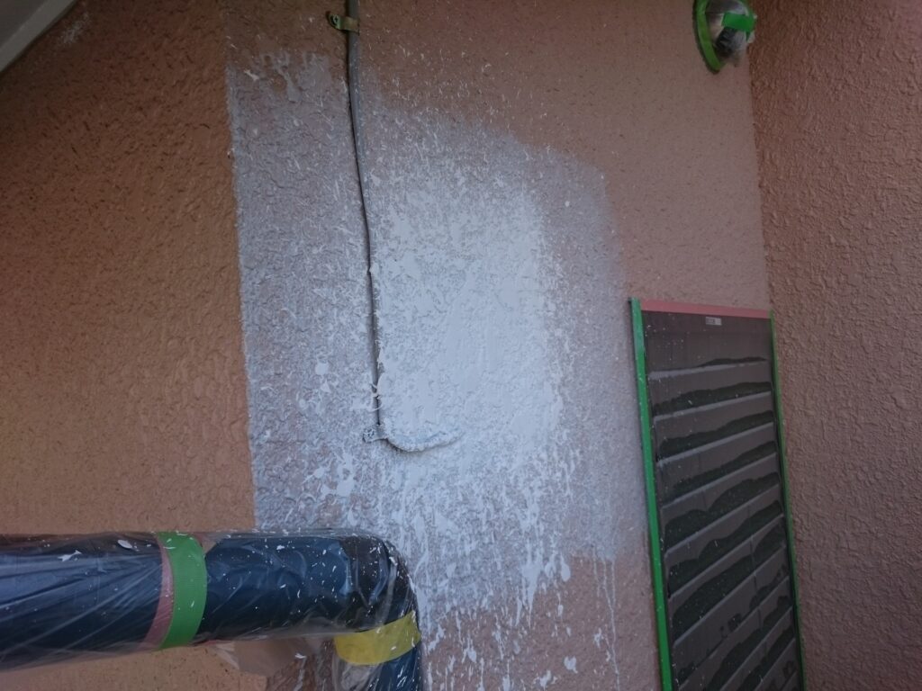 2015.04.18佐倉市染井野にて換気扇撤去しました。 その他の工事 この記事を書いたスタッフ 本社 齋藤 もう4月も終わりですね。雨続きが多かったと思いきや、今度は急に暑くなったり・・・みなさん体調管理は十分気を付けましょう。本社の齋藤です。今日は、こんなのもやりますシリーズ・・・第一弾!?換気扇撤去後の塗装です。元々付いていた換気扇です。使用していないとの事でしたので、施主様のご要望で撤去する形になりました。撤去後、ラスカットを貼り左官補修しました。配線は生きているので、そのまま使用する形になりました。左官がしっかり乾いたのを確認した後に、レナラックにてパターンを吹き付けしました。パターン吹き後、フッ素にて完成です。他のと同じ感じになったので補修した感じが分からなくなりました。職人さん仕上がりばっちりです。無料診断・無料見積り 電話をかける LINEで見積り依頼 メールで見積り依頼 この記事を書いた人本社 齋藤 このスタッフのその他の工事日記 あすみが丘S邸外壁、屋根塗装工事