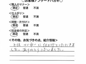 当社でリフォームを施工したお客様より頂いたアンケートはがきをご紹介いたします。