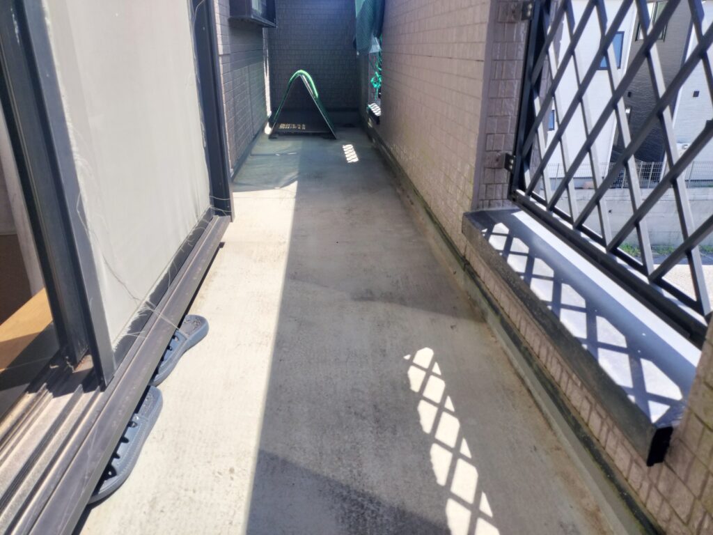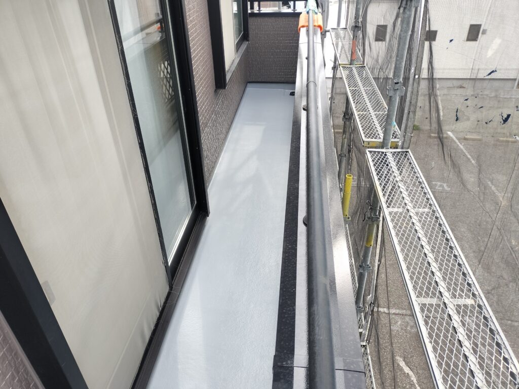 ベランダ防水面の下地が腐食でベコベコだった為、下地補修+全面コンパネ張りをしてFRP防水を施工しました