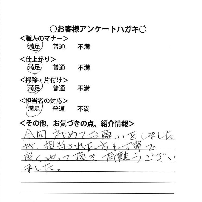お客様アンケート 今回初めてお願いをしましたが、担当された方も丁寧でよくやっていただき有難うございました。職人のマナー 仕上り 掃除・片付け 担当者の対応 リフォーム内容詳細施工年月2026年2月ご住所江戸川区春江町施工詳細雨樋枯れ葉除けネット エスロネット 担当スタッフよりホームページよりお問い合わせ頂き、誠にありがとうございました。物件ごとに的確にアドバイスさせて頂きますので、今後共、宜しくお願い致します。 担当市川支店 杢谷 市川市新田:外壁塗装・ベランダ防水工事 千葉市花見川区朝日ヶ丘:外壁・屋根塗装工……