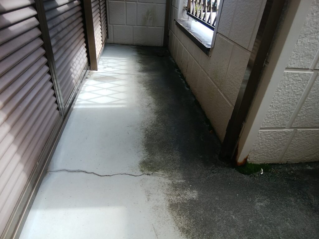ベランダは立上りのない納まりだった為、シーリングをキッチリ行いながらウレタン通気緩衝工法でなんとか納めました。