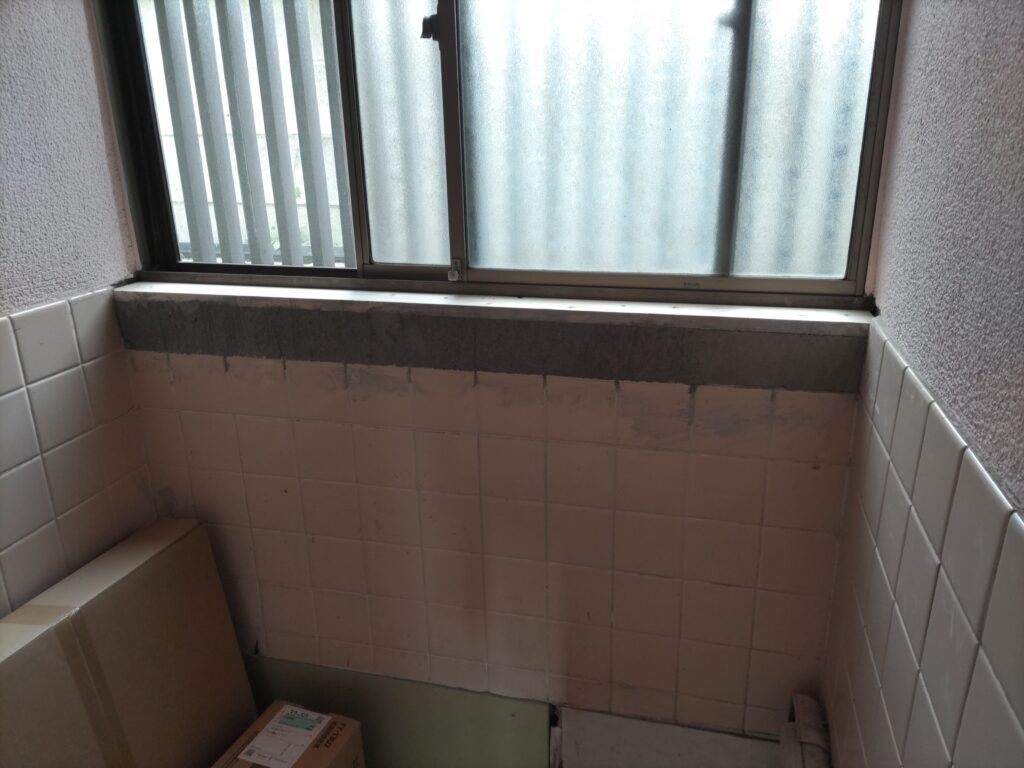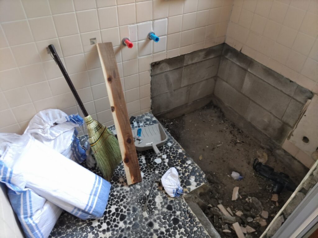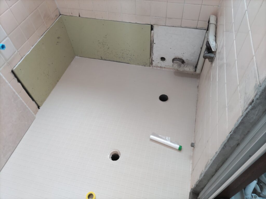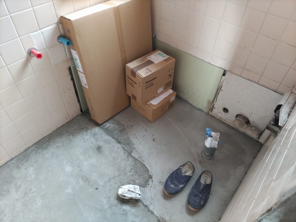 - 撤去後に、置き型の浴槽を設置するため、下場をモルタルを使用しフラットにしていきます。