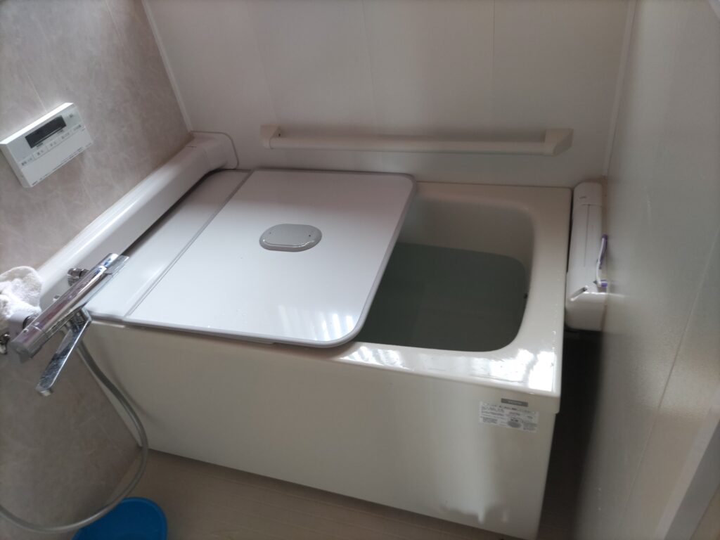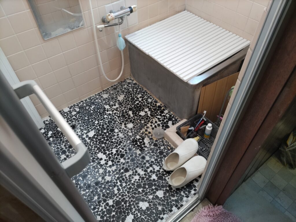 - 何年か前に、浴室内の壁も塗装していて、非常に気に入っていただいてるため、ユニットではなく既存の浴室を生かした工事を希望だったので、タイル面のバスパネルと、浴槽をメインに交換しました。