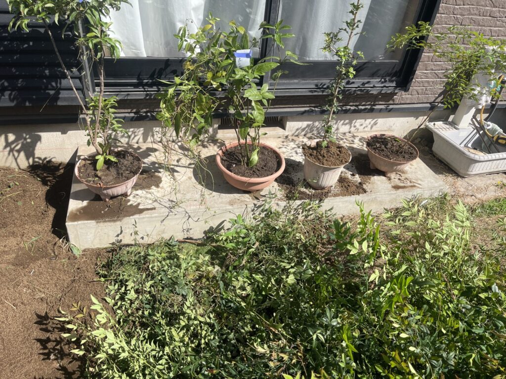 - 植栽も多数あるため、必要な分だけ植木鉢に植え替えました。