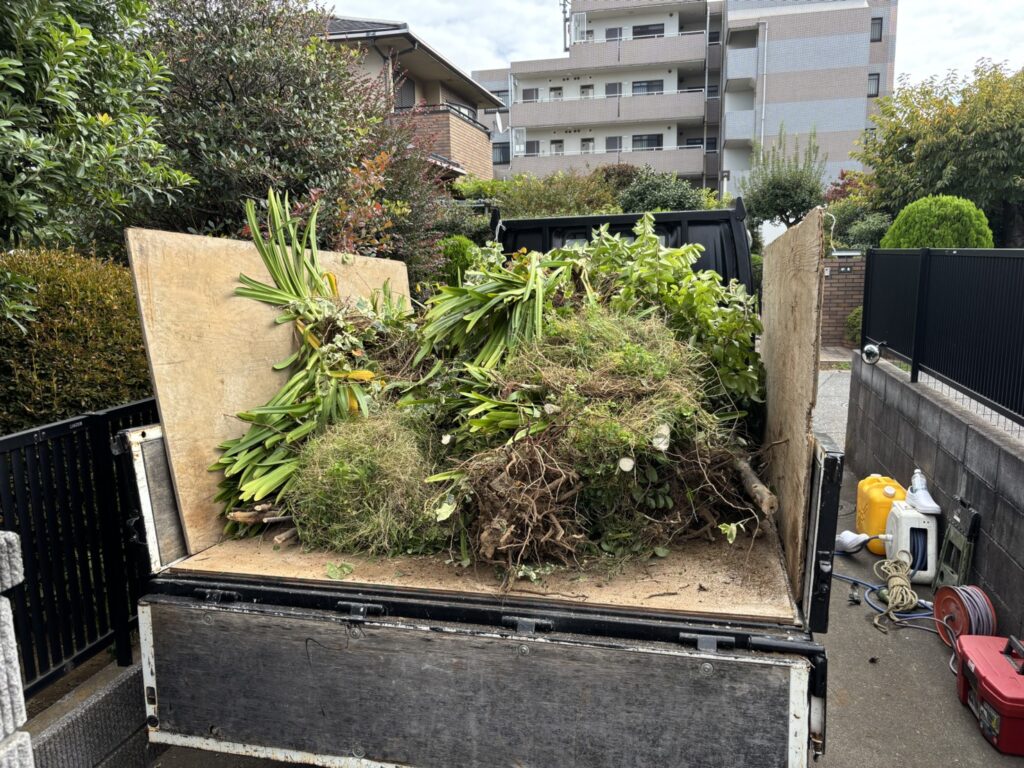 - 撤去した植栽はトラックに詰め込んでいきます。