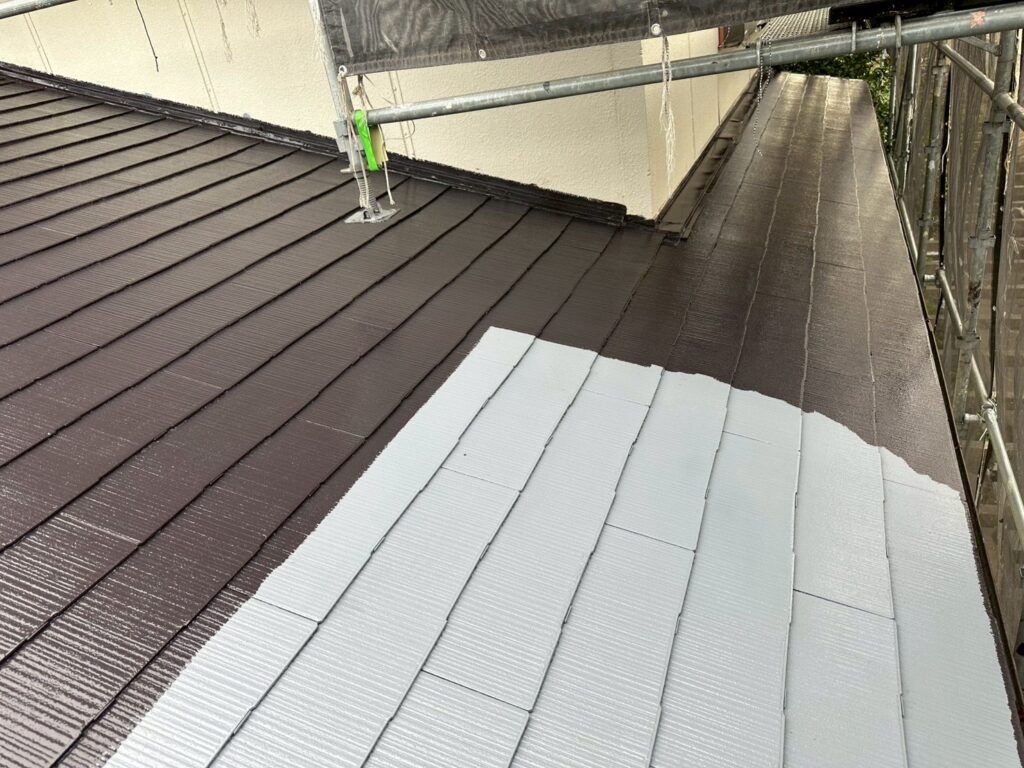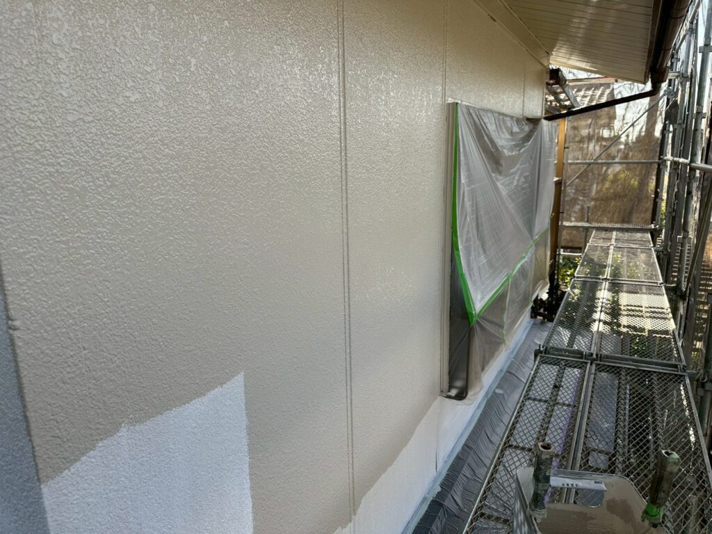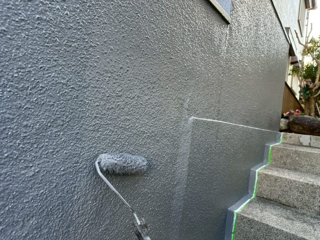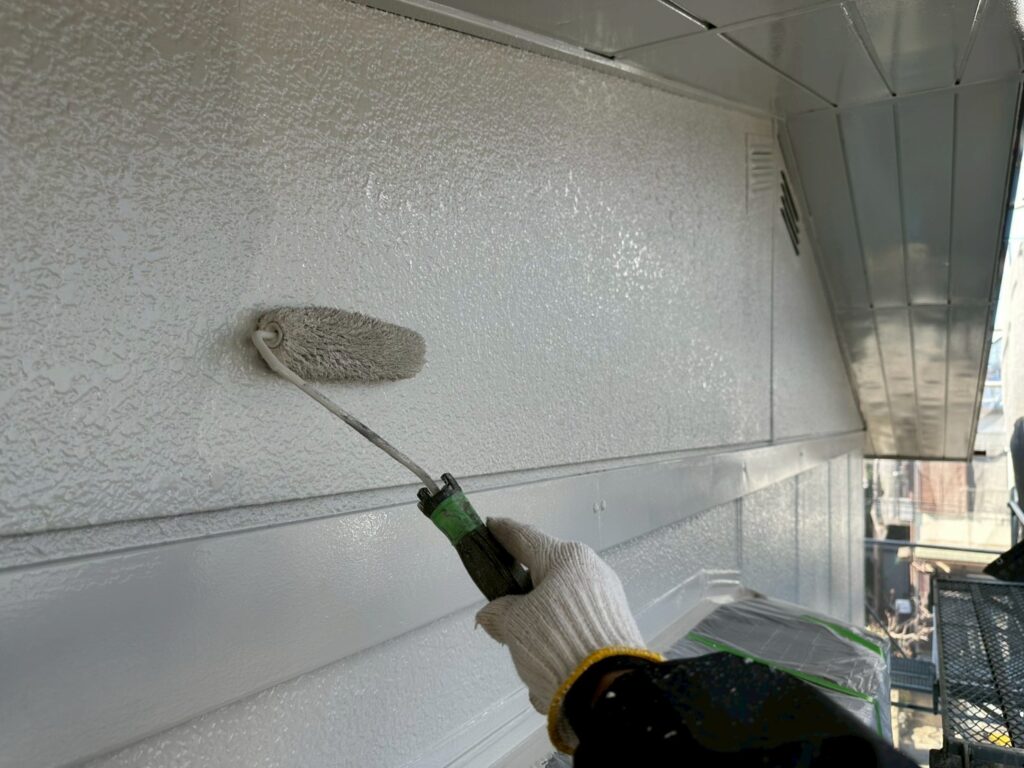 - 続いて外壁塗装の上塗り工程に入っていきます。