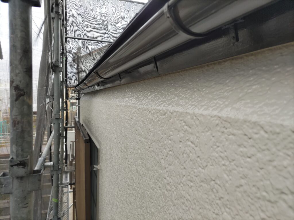 - 外壁塗装完了後に、附帯部(雨樋・破風板等)の塗装を行い完了です。