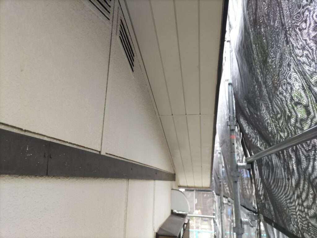 - 軒天は鉄製の為、錆止め配合のワンツーマイルドSIを塗布していきます。