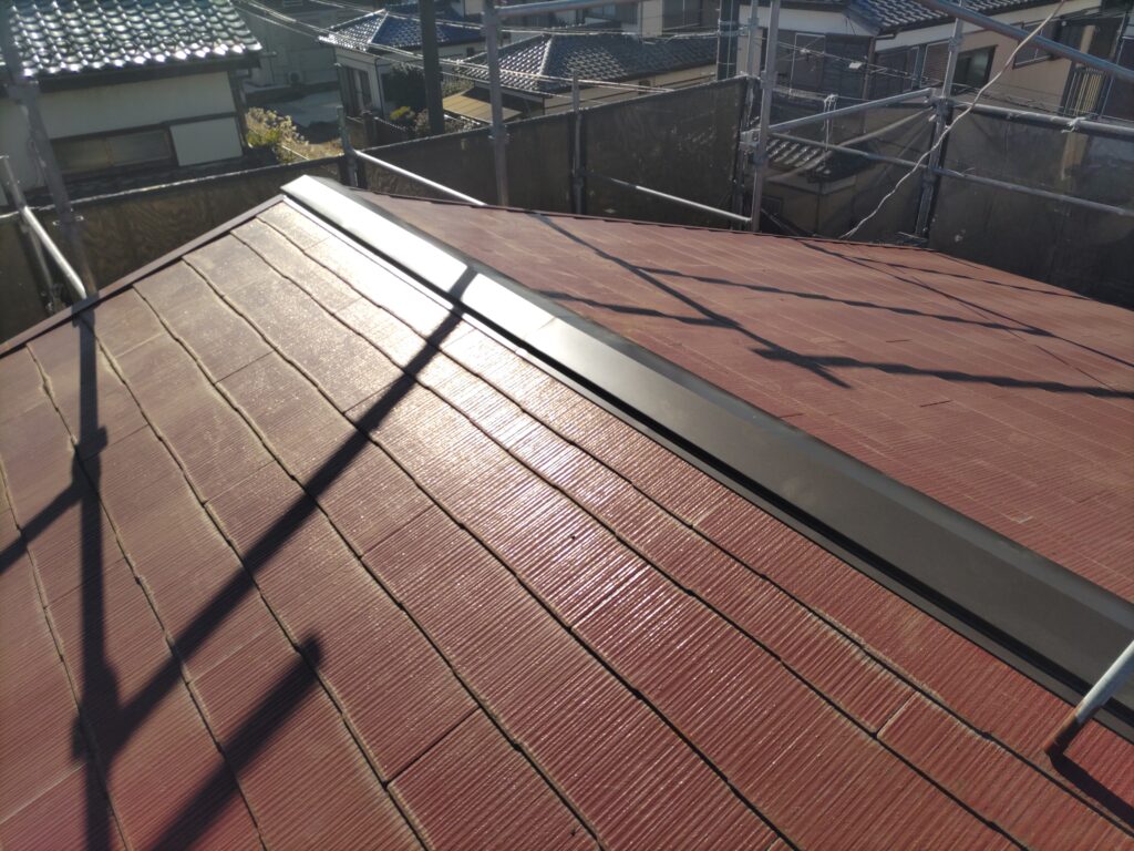- まずは足場設置を行った後に、棟板金の浮きが気になるとの事で、新規棟板金を交換しました。