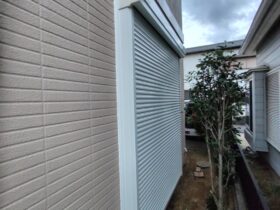 こんにちは 杢谷です。 八街市のI 様邸より追加工事を頂き、雨戸一筋取付工事を施工させていただきました。2階の窓への施工でしたので、足場がないと取付できない工事でしたので、タイミングバッチリでした。