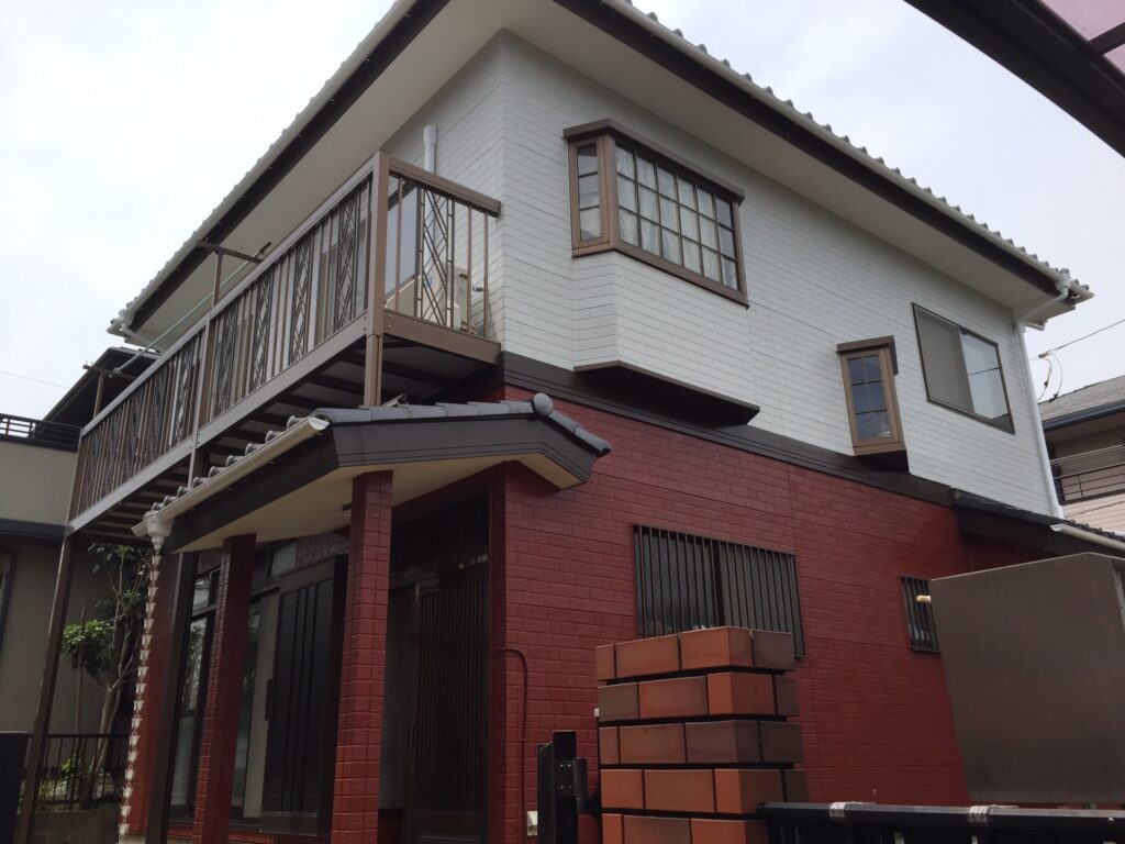 実際に塗装していくと、白い帯と破風がぼやけて見えたので、帯の色は茶色に変更しました。施主様も大変喜んで頂けました!!!